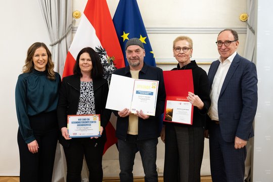 Die feierliche Übergabe der Urkunde und der goldenen Plakette fand im Bundeskanzleramt in Wien statt. Überreicht wurde sie von Staatssekretärin Claudia Plakolm und Gesundheitsminister Johannes Rauch – ein Moment, auf den wir wirklich stolz sind.